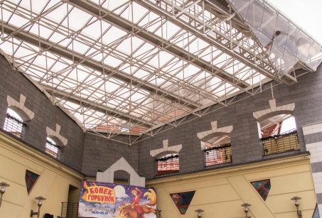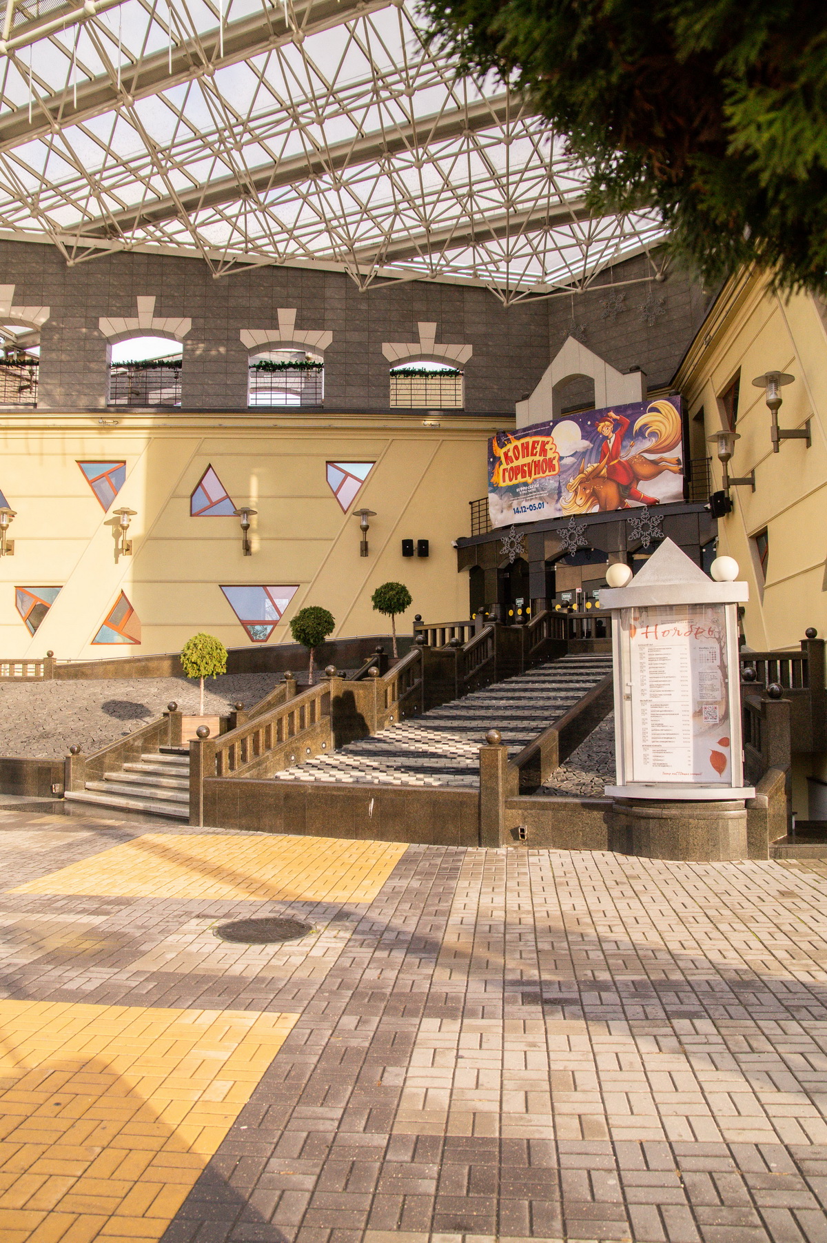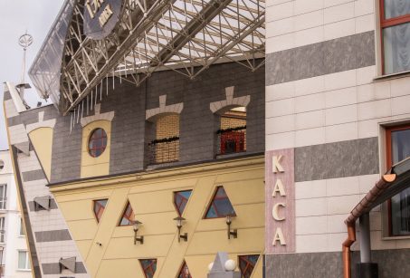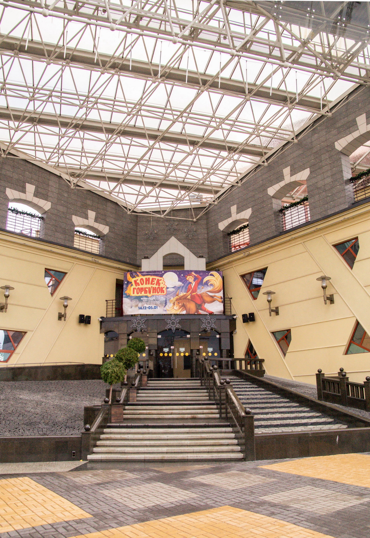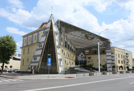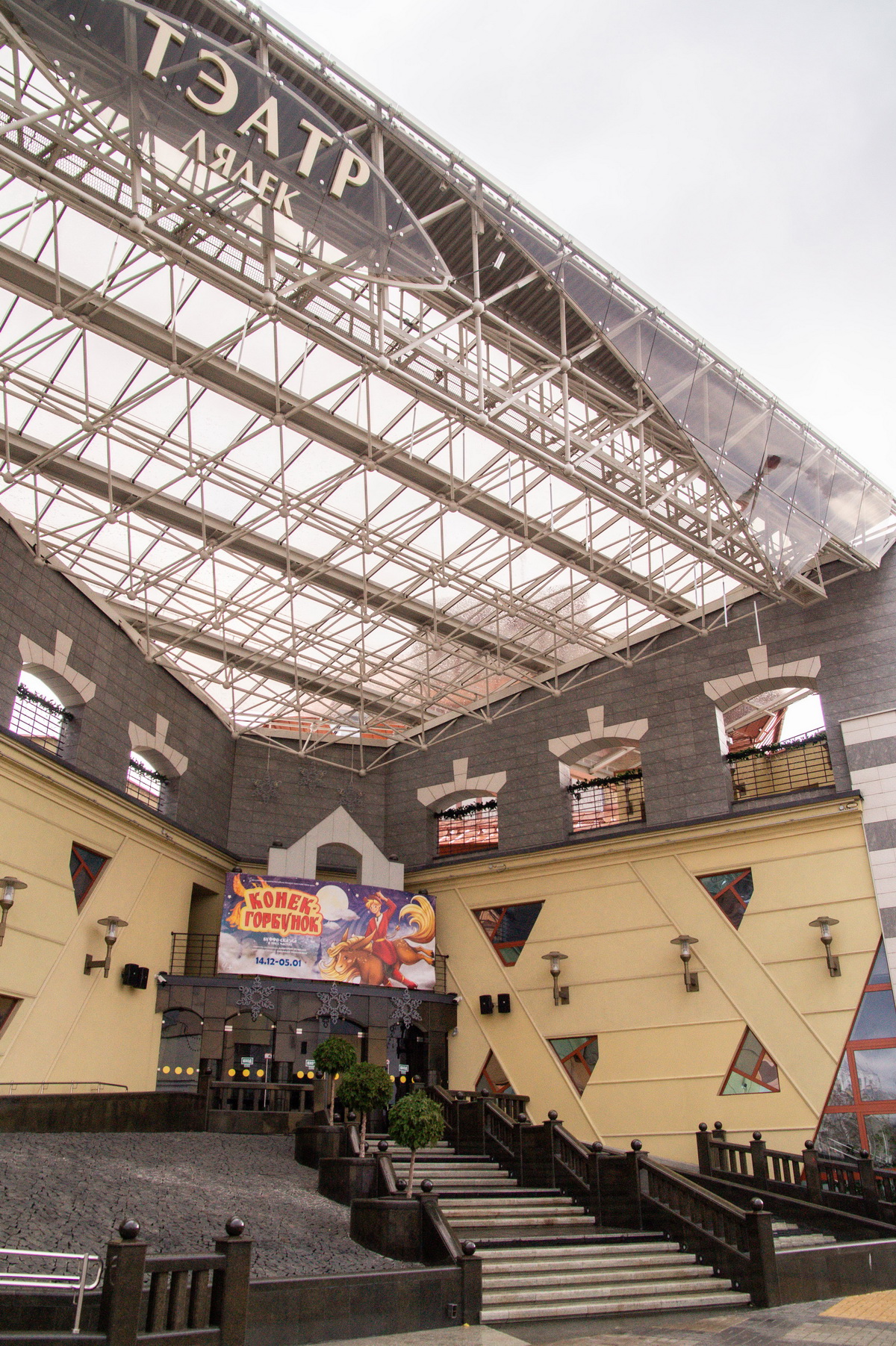 Тэатр - складанае ў плане разнапавярховы з цокальным паверхам будынак. Вышыня паверхаў - 4,20 і 3,60 м (цокаль); 3,30 м (асноўныя паверхі). Сцэна - першага тыпу (С1) з чатырма працоўнымі галерэямі і каласнікамі. У мэтах стварэння пэўнай архітэктурнай выявы тэатра прыменены структурныя канструкцыі, як вонкавыя, так і інтэр'ерныя, нахільныя па кроквах (у тым ліку веерападобныя) пакрыцці, дэкаратыўнае пакрыццё сцэнічнага аб'ёму, святлопразрысты купал. Уваход у тэатр прадугледжаны па вонкавых парадных усходах або пандусе непасрэдна ў двухсветны вестыбюль з гардэробам і санітарнымі вузламі або праз касавы вестыбюль. Артысты і работнікі тэатра праходзяць на працоўныя месцы праз службовы вестыбюль. Прадугледжаны комплекс падсобных памяшканняў (майстэрні, гараж і інш.) з самастойнымі ўваходамі ў іх з унутранага гаспадарчага двара. У крыле будынка тэатра на трох паверхах запраектаваны кафэ і бары.
