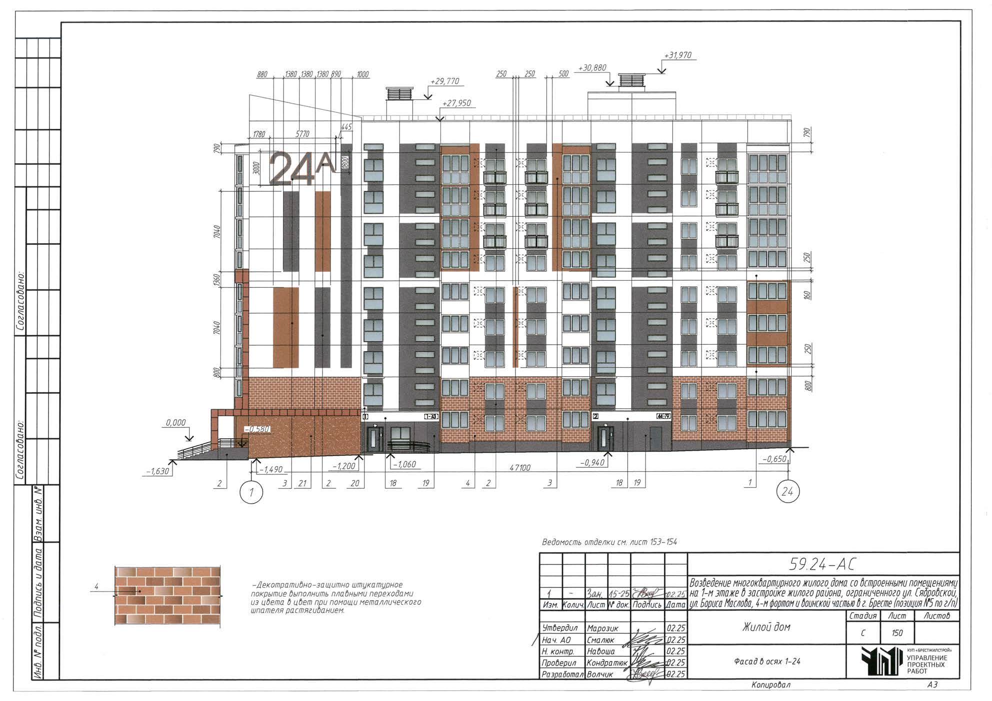 Строительство ведется силами КУП «Брестжилстрой» на основании договора строительного подряда от 27.03.2025 № 22/2025.