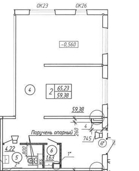 261 519 р. Встроенное помещение 2 в жилом доме позиция №3 по г/п, 65.23 м2